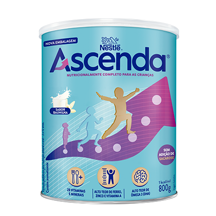 Chegou ASCENDA, da Nestlé! Suplemento nutricional infantil especialmente elaborado com ingredientes que contribuem para o crescimento ideal e desenvolvimento cerebral.