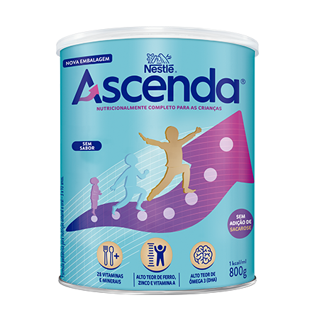 Chegou ASCENDA, da Nestlé! Suplemento nutricional infantil especialmente elaborado com ingredientes que contribuem para o crescimento ideal e desenvolvimento cerebral.