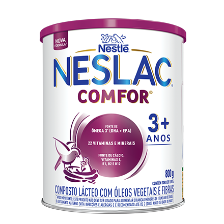 Composto lácteo com adição de Prebióticos, DHA e nutrientes importantes para adequada alimentação na infância 24,27,28,94,95. Isento de açúcar (sacarose) e aromatizante.